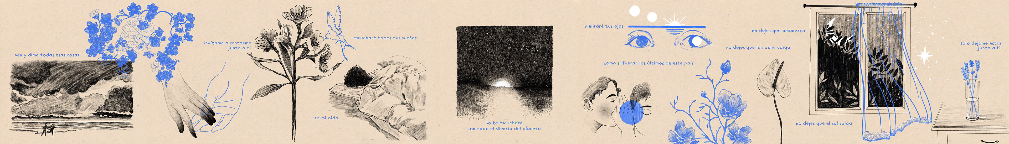 Series of illustrations based on the song Las Flores by Cafetacvba.